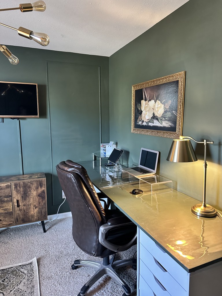 There is one very sentimental piece of décor in my home plate space that means the world to me. Right above my desk, I decided would be the perfect place to house an oil painting of three magnolia leaves with the most beautiful ornate frame. This painting belonged to my late mother who I am about 99% sure purchased it in the late 90’s at a flea market. When she passed, I decided to take it and although I’ve never used it in the 15 years I’ve owned it, I am so thankful that in a unique way she is here taking this home décor journey with me.
