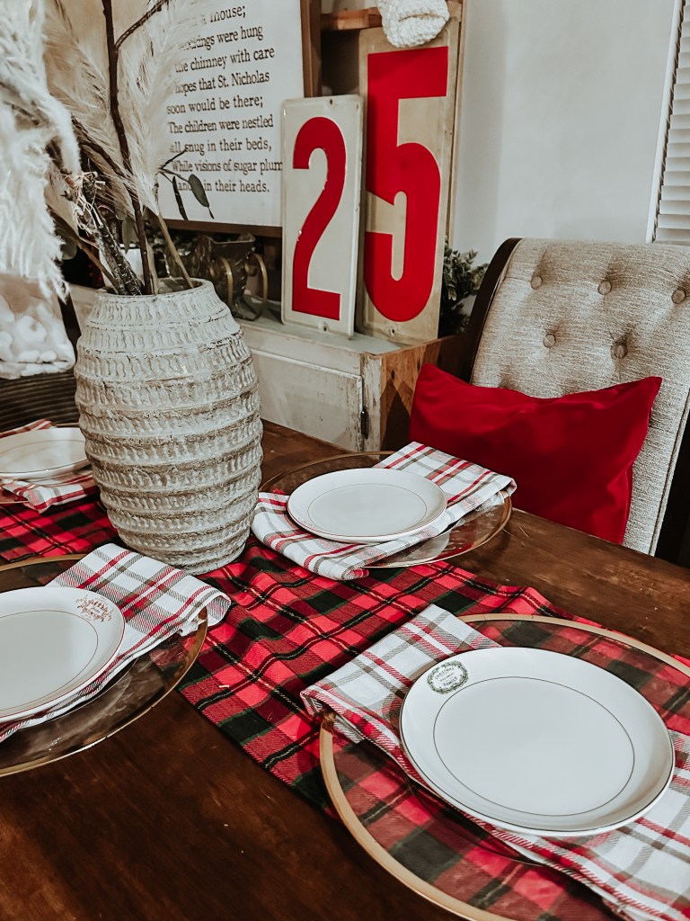 That was it, this was THE tree. It paired well with my floating shelves, Santa decor, and first real tablescape. I was happy and all was well…..until it wasn’t.